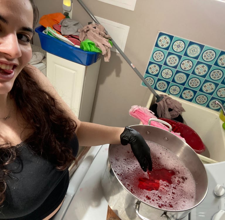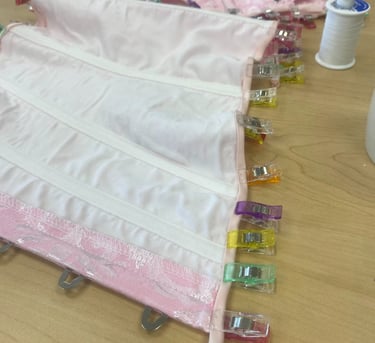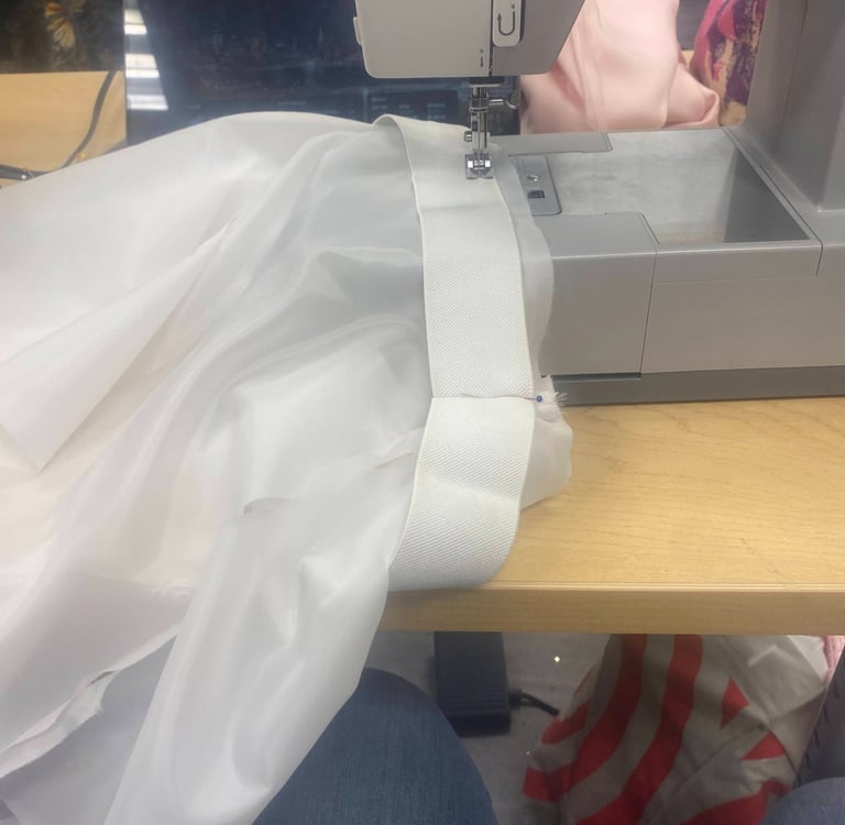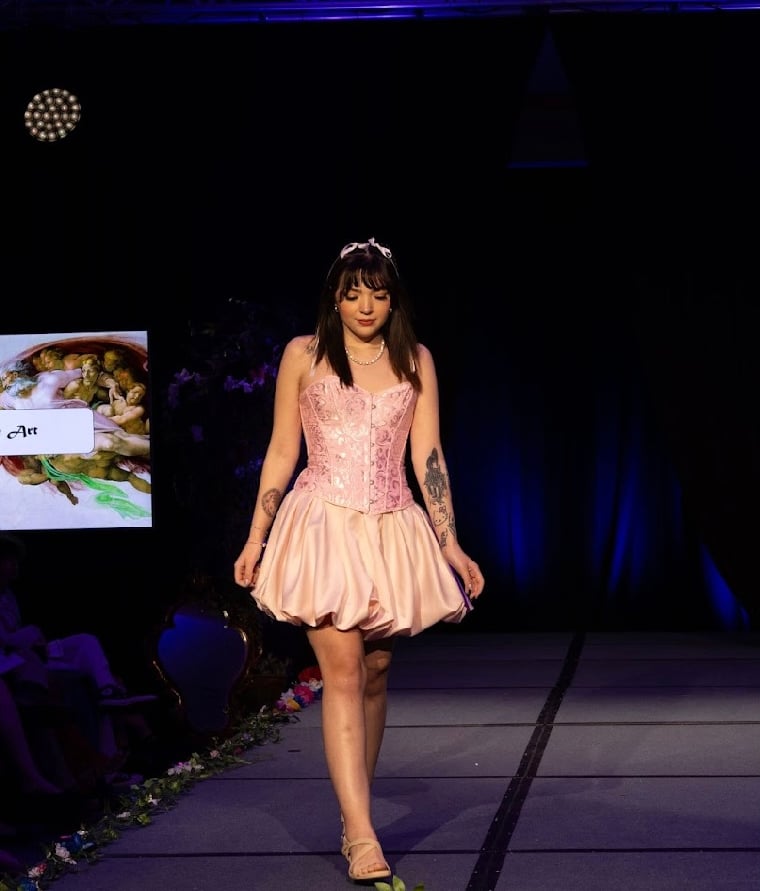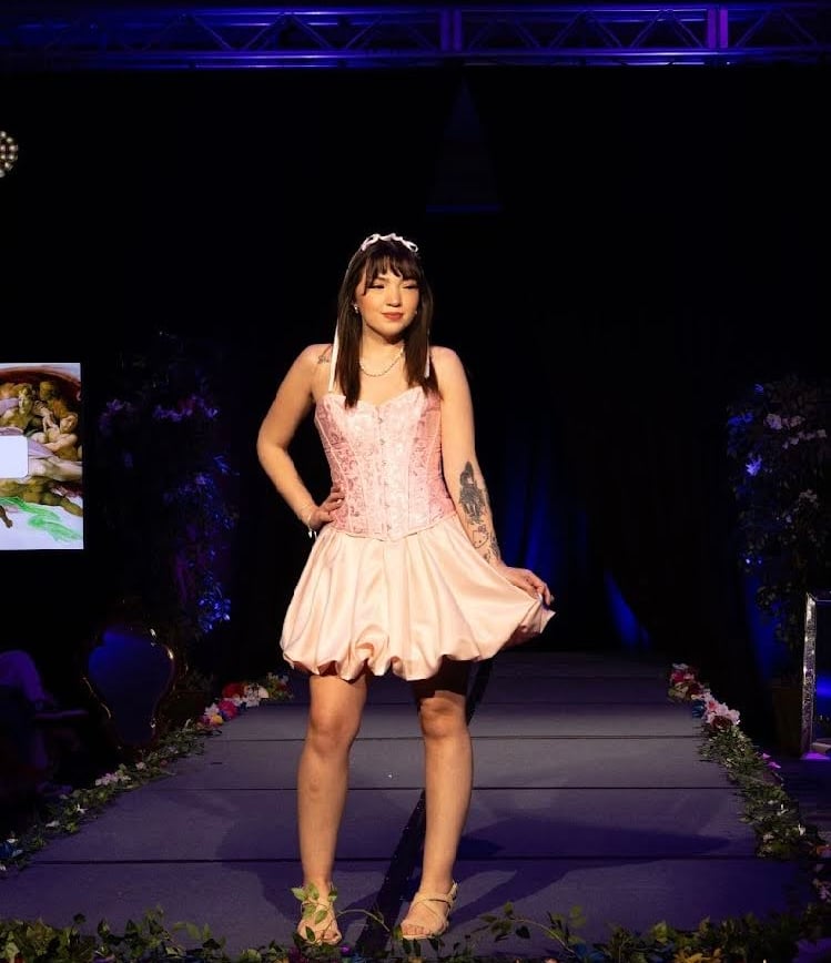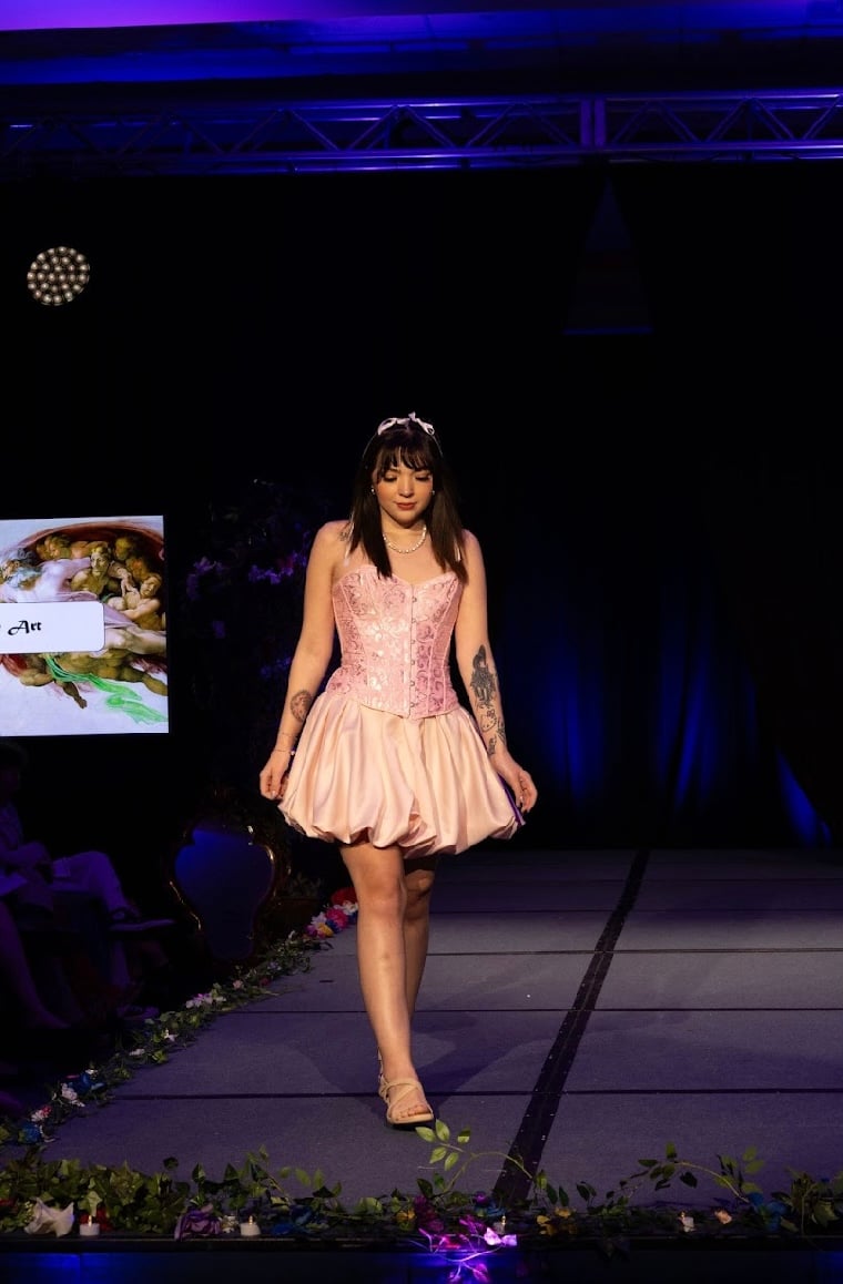 Inspired by Marie Antonitte and all of her feminine and lavished outfits during the rococo era of art. I wanted to create something very girly, light and princess-y with the fitted corset and a puffer skirt all in a light pink shade. The corset was dyed and the edge was changed to match the fabric of the skirt. The puffer skirt is gathered with an elastic attached to the lining.