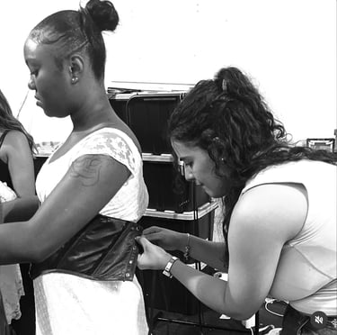 Working behind the scenes of a fashion show is something I really enjoy. My first experience was in Brookdale's Fashion Show in 2025, Eras of Art. I helped mostly with dressing models for quick changes throughout the show. I also helped line up the models and making sure there was enough time between models for quick changes. I volunteered for the Newark Fashion Show in September 2025 as an assistant to a designer. I helped her with last minute sewing, styling decisions, and steaming the garments.