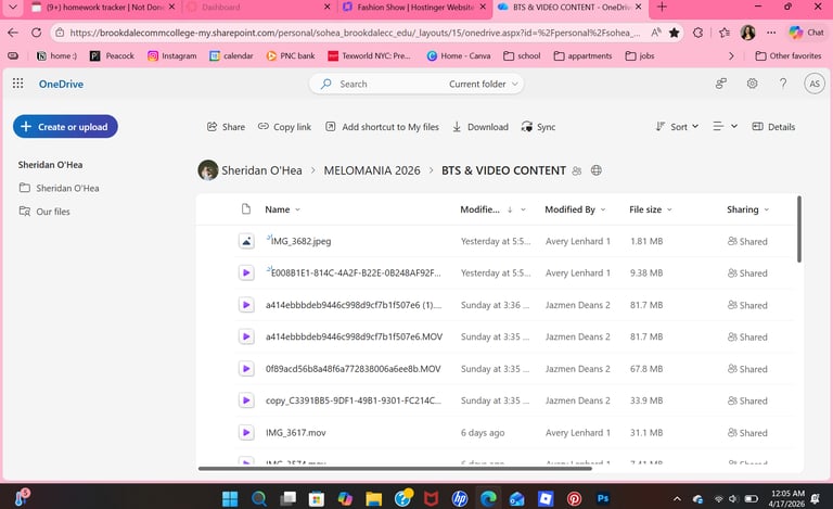 As video coordinator for Brookdale's Fashion Show Melomania, I'm creating and editing videos to be put into the show. It is a behind the scenes video of all the work put on the last semester by everyone involved. It's a little "Life as a Fashion Student" video to showcase our guests at the show with how much work putting on a show in one semester is.